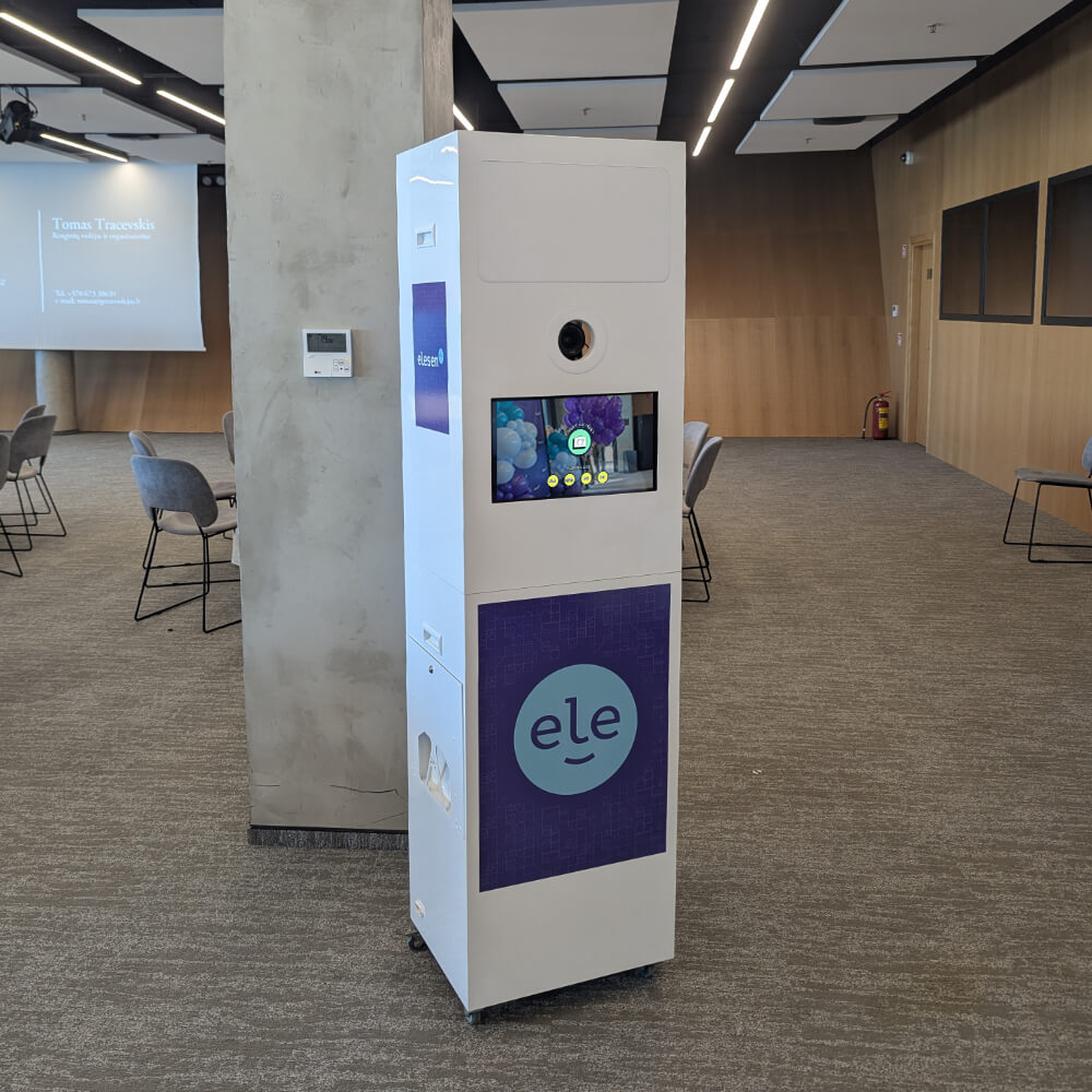 Kokio dydžio yra foto būdelė? Foto būdelės aukštis yra ~2 m., plotis yra 0,6 m., gylis – 0,4 m., tad ji nesunkiai tilps visur. Tik reikia palikti vietos pozavimui, patartina ~1-1.5 m.